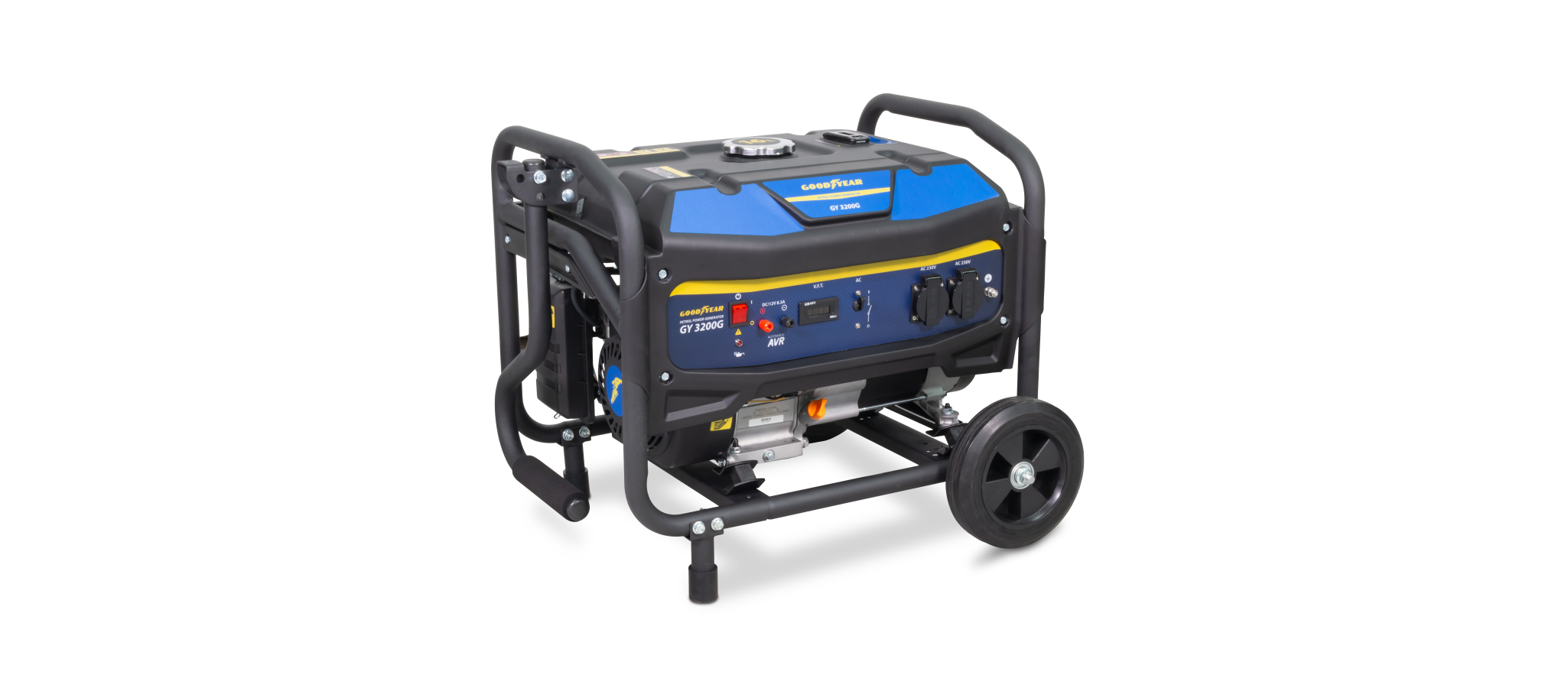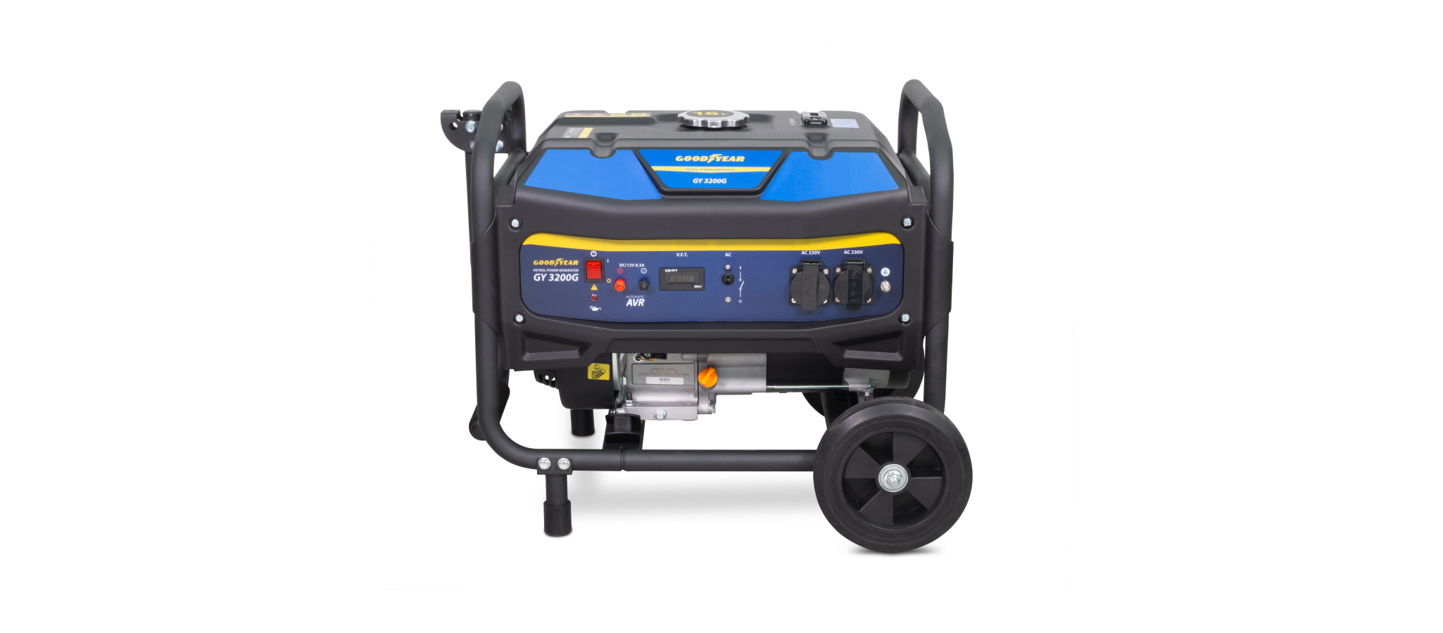 El Generador eléctrico gasolina Goodyear con 3.000W de potencia máxima y 2.700W de potencia nominal es un equipo robusto, potente, y de uso sencillo. Con una tensión nominal de 230V, ofrece una toma monofásica de 2 enchufes que permiten sacarle el máximo rendimiento. Es un generador eléctrico de gasolina ideal para exteriores que gracias a su sistema AVR proporciona una corriente estable y sin variaciones.Este grupo electrógeno de gasolina viene equipado con un sensor de aceite, voltímetro y toma de tierra además de incorporar un sistema de diferencial térmico que lo protege contra sobrecargas y cortocircuitos. Su modo de arranque es de tipo eléctrico y también manual. Entrega mayor tensión a las bujías, reduce las grandes cargas de corriente eléctrica y mejora el mantenimiento, además aumenta la intensidad consiguiendo un campo magnético con más líneas de fuerza.